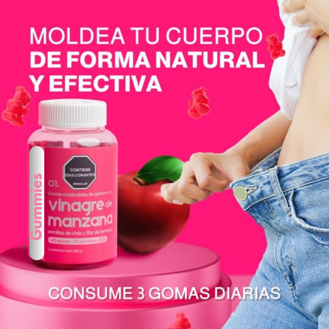Las gomitas de vinagre de manzana ayudan a acelerar el metabolismo, reducir el apetito, mejorar la digestión, eliminar toxinas y apoyar la pérdida de peso de manera natural.